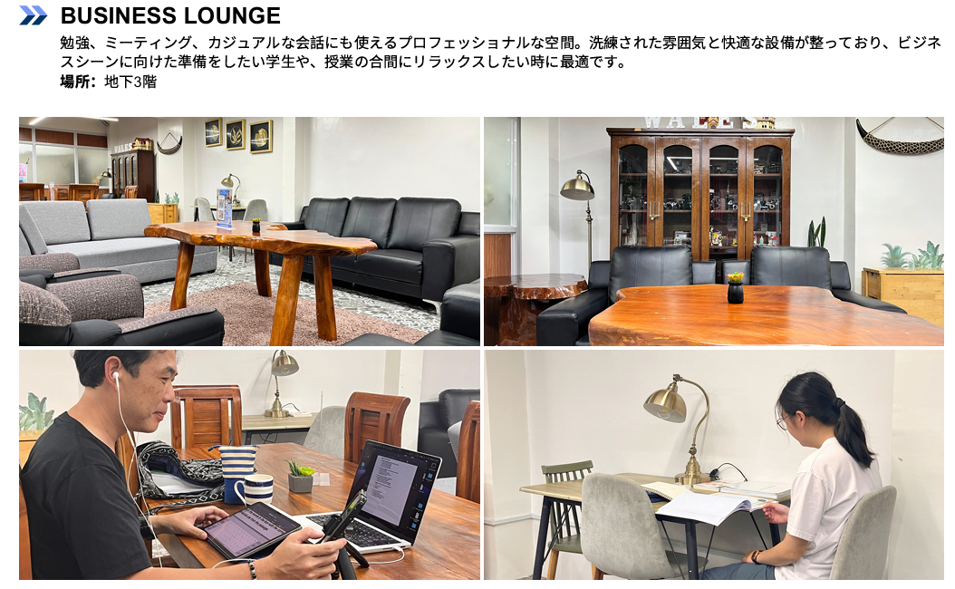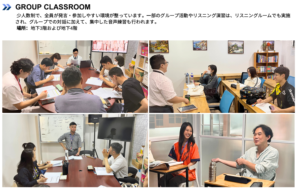 年齢や国籍を問わず、さまざまな学⽣が集まるため、英語を話す環境が⾃然と整っています。