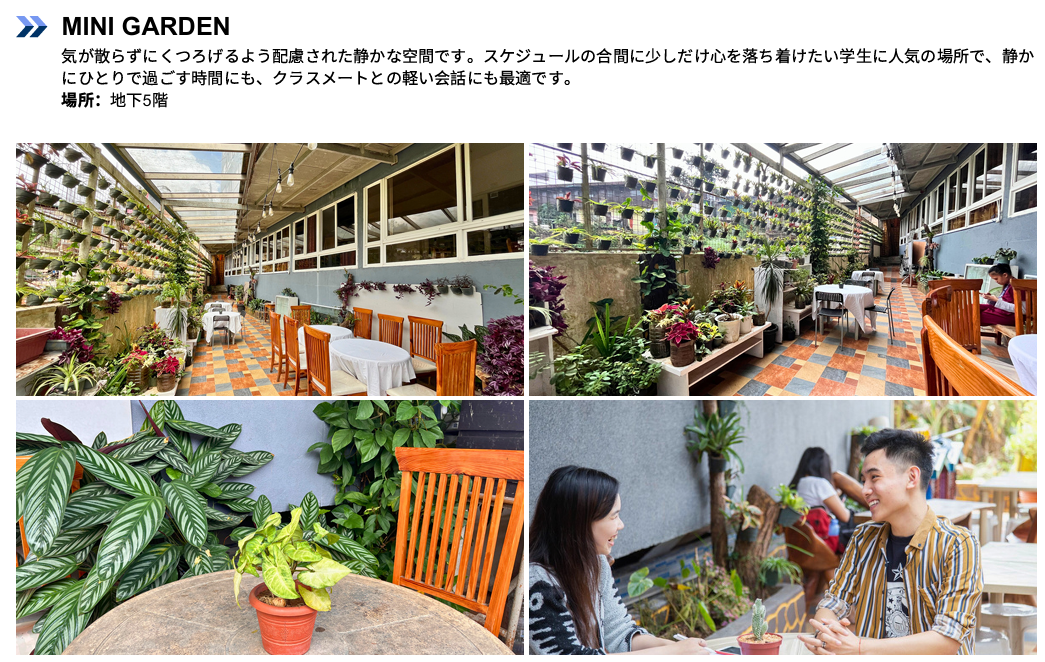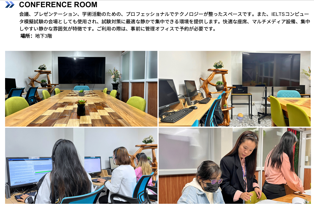 バギオにもたくさんの学校がありますが、その中でも徒歩でSMモールなどがある中心地へ行ける唯一の学校。バギオではスパルタスタイルが一般的ですが、WALESはノンスパルタ、自由度が高いため、授業後に街へ行き息抜きがしやすい、大人におススメな学校。真面目に勉強したいけど、学生のようにビッシリみっちり勉強は無理!という方にはWALESです!
