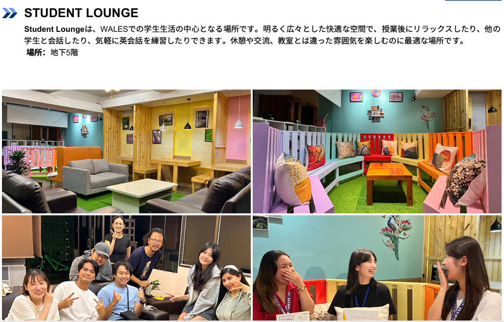 WALESはコンパクトな学校ですが、学⽣⼀⼈ひとりに対してきめ細やかなサポートと丁寧な対応を⾏っています。