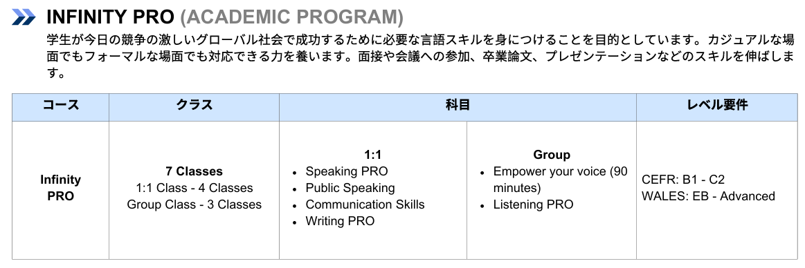 講師は全員ライセンスを持ち、さまざまな教授法に精通した経験豊富な教育者です。